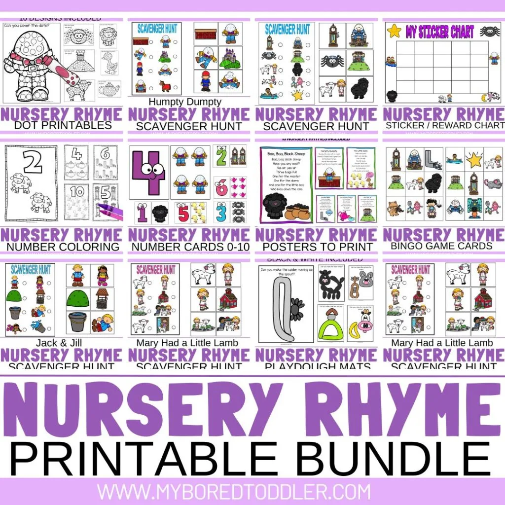 Enjoy a themed week full of Nursery Rhyme themed toddler activities! This is a really fun toddler weekly activity guide and a topic that perfect for the toddler & preschool age group!