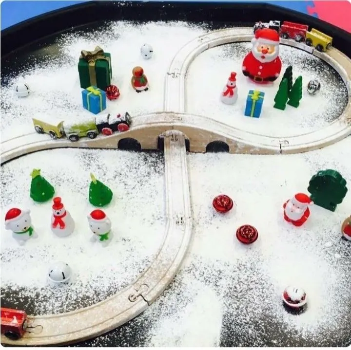 I love this idea for a North Pole themed sensory bin. You can use flour as pretend snow or you can get Instant Snow HERE on Amazon.