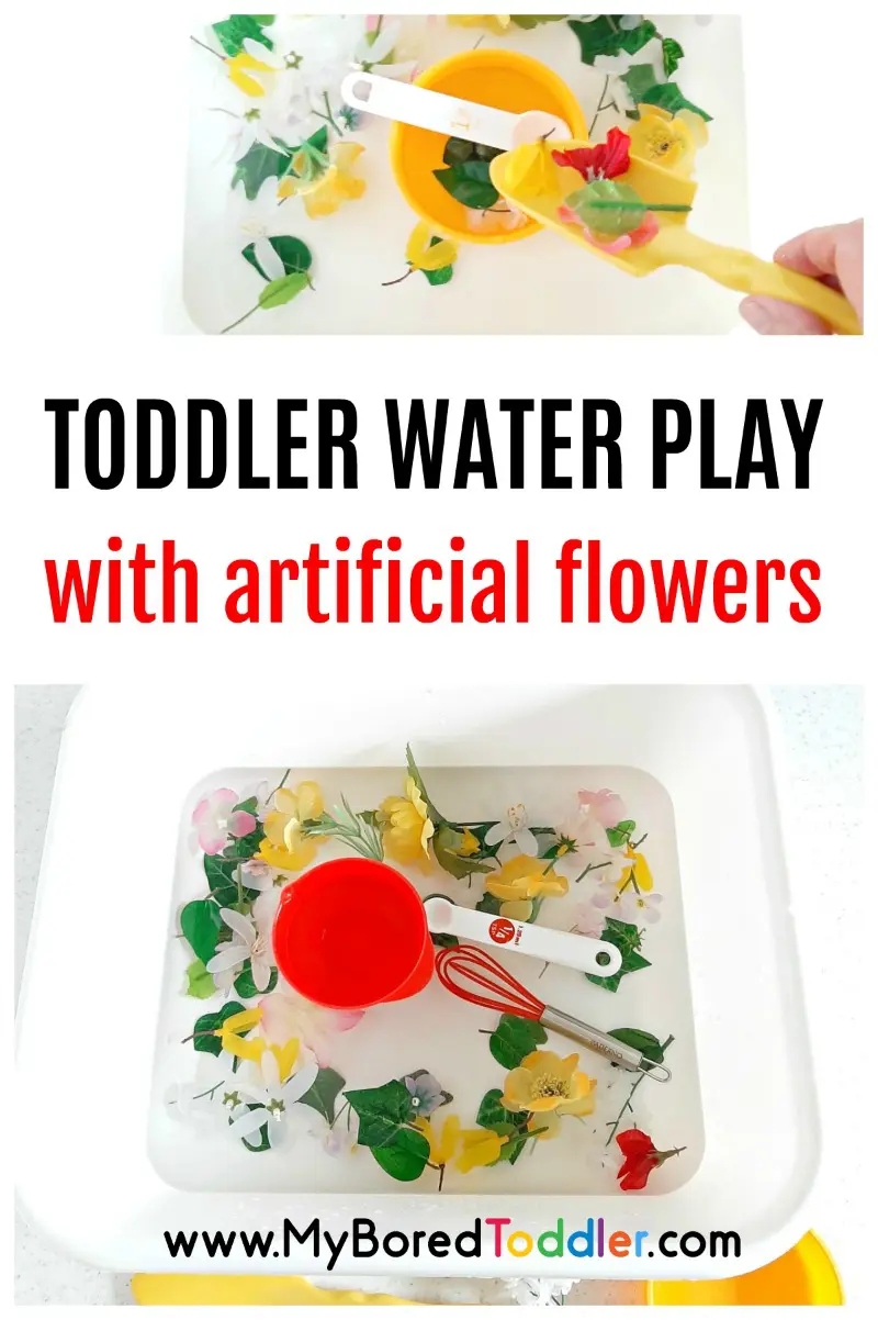 Artificial flowers can easily be used in toddler activities all year round. They provide low-cost, low prep, colorful sensory play for toddlers.