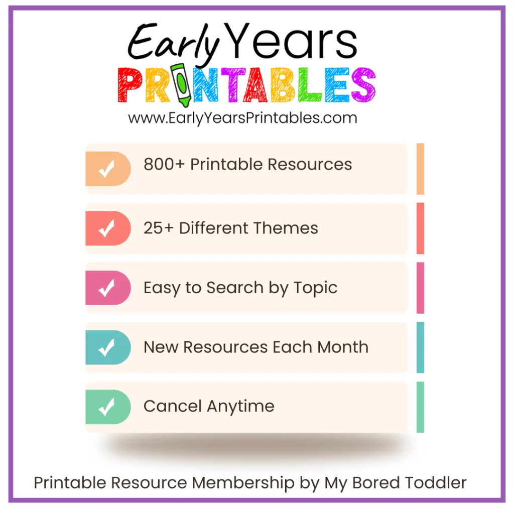 Test it out with the FREE Membership or join for access to 800+ Early years Printables.