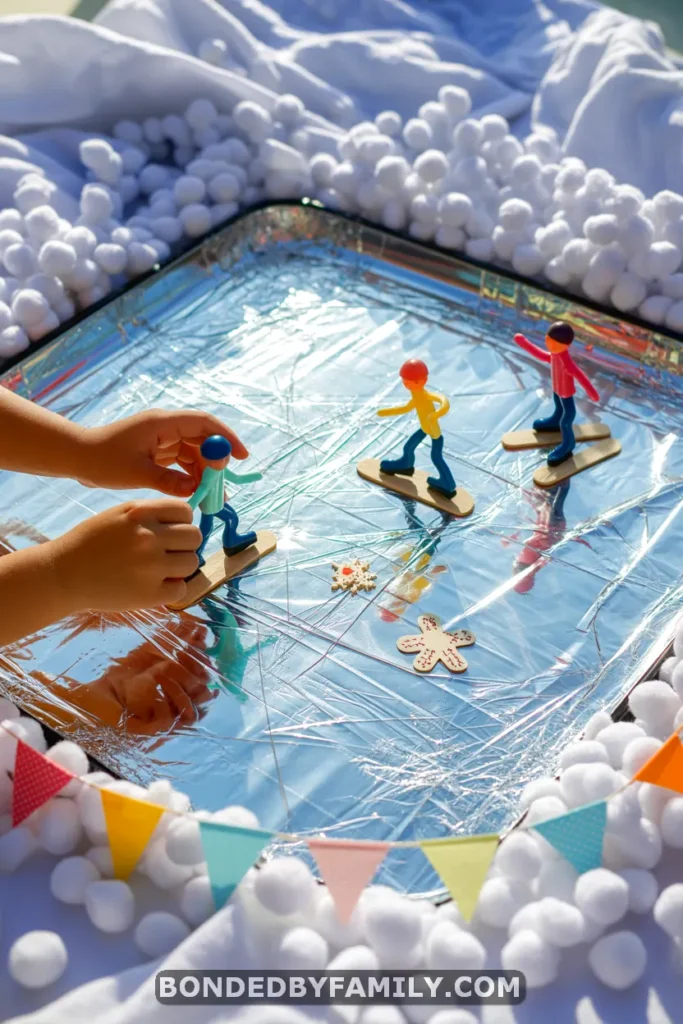 Set up your own ice skating rink using toys and craft sticks as your 'skates'. This idea is from Bonded By Family and the instructions can be found HERE.
