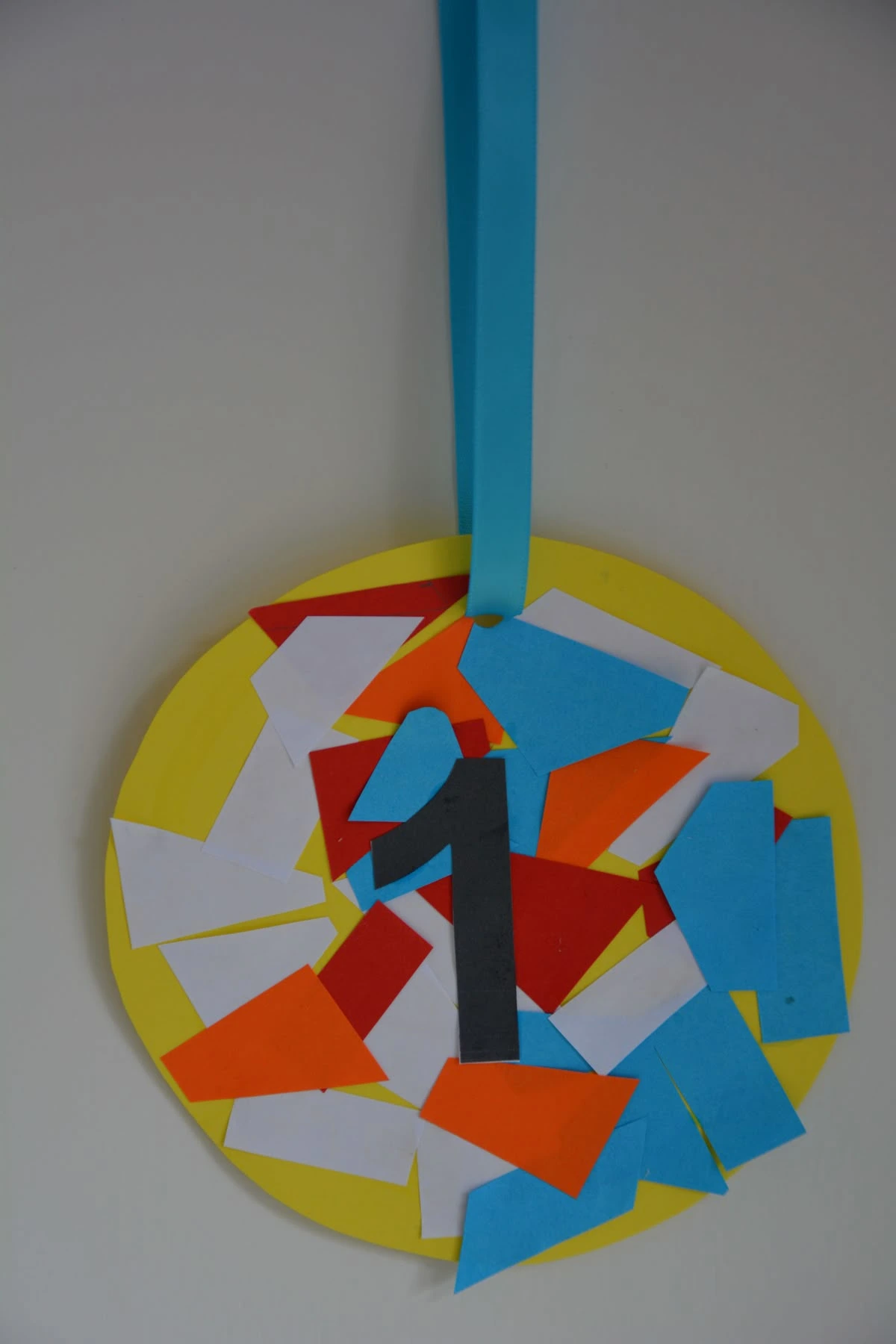 With younger children I like to make BIG medals as it's easier for them to decorate. You can use a paper plate (cut around the outside of it if you want a smaller one) and decorate it however you like!